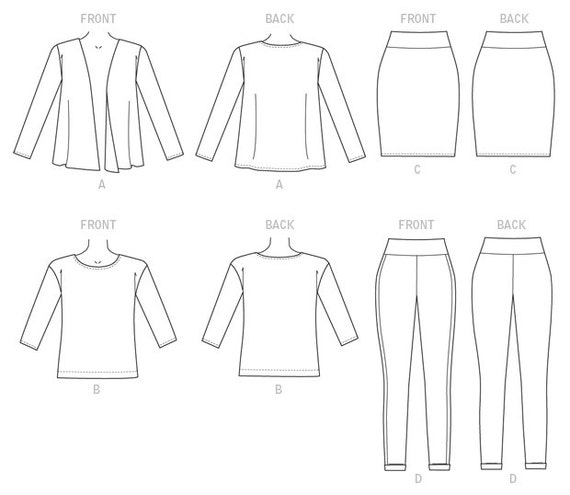 Mccall S 7331 Misses Cardigan T Shirt Pencil Skirt And Leggings